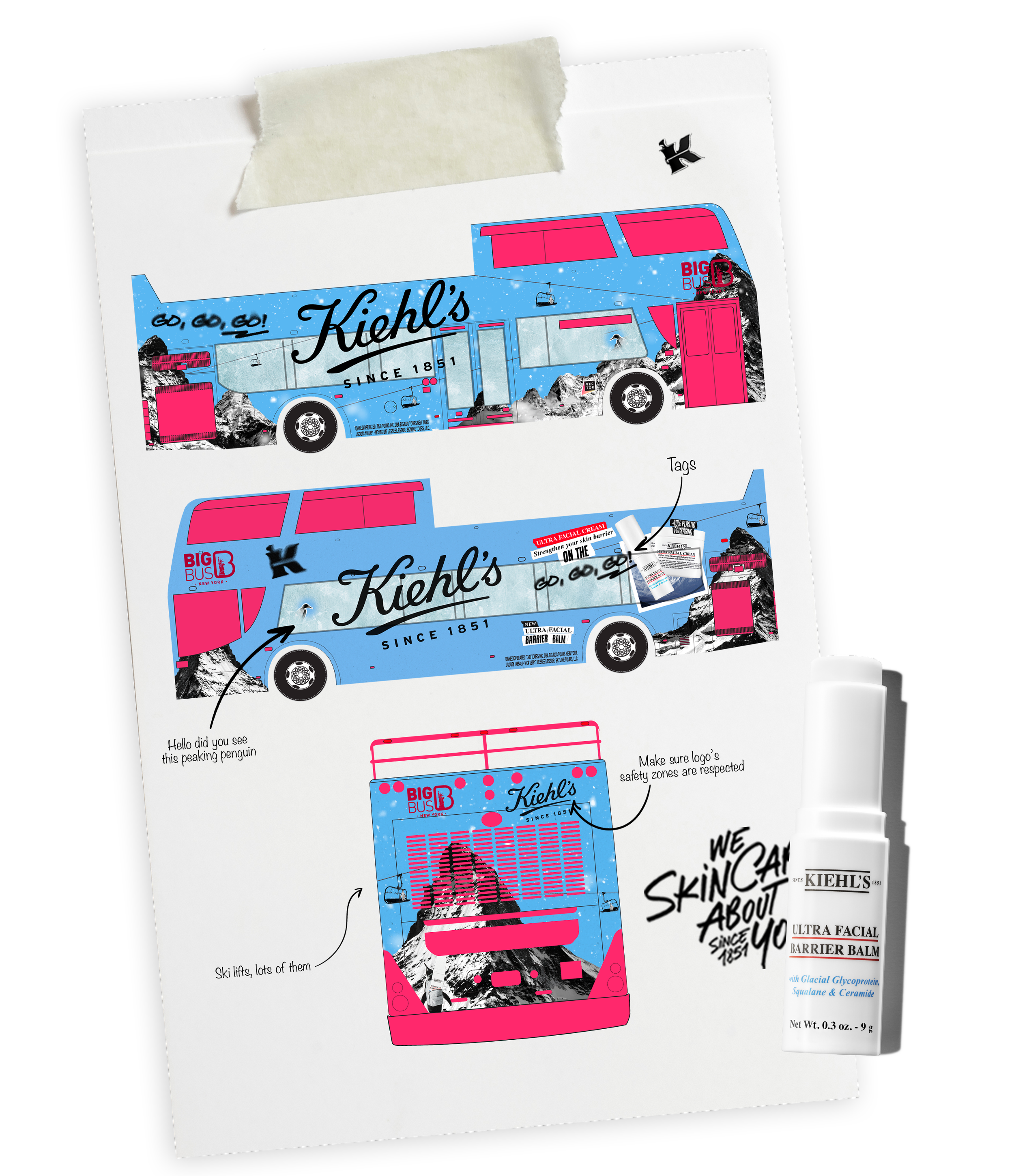 Create an immersive design for one of New York City’s famous Big Buses to promote the brand’s new Barrier Balm and Ultra Facial Cream with worldwide influencers.