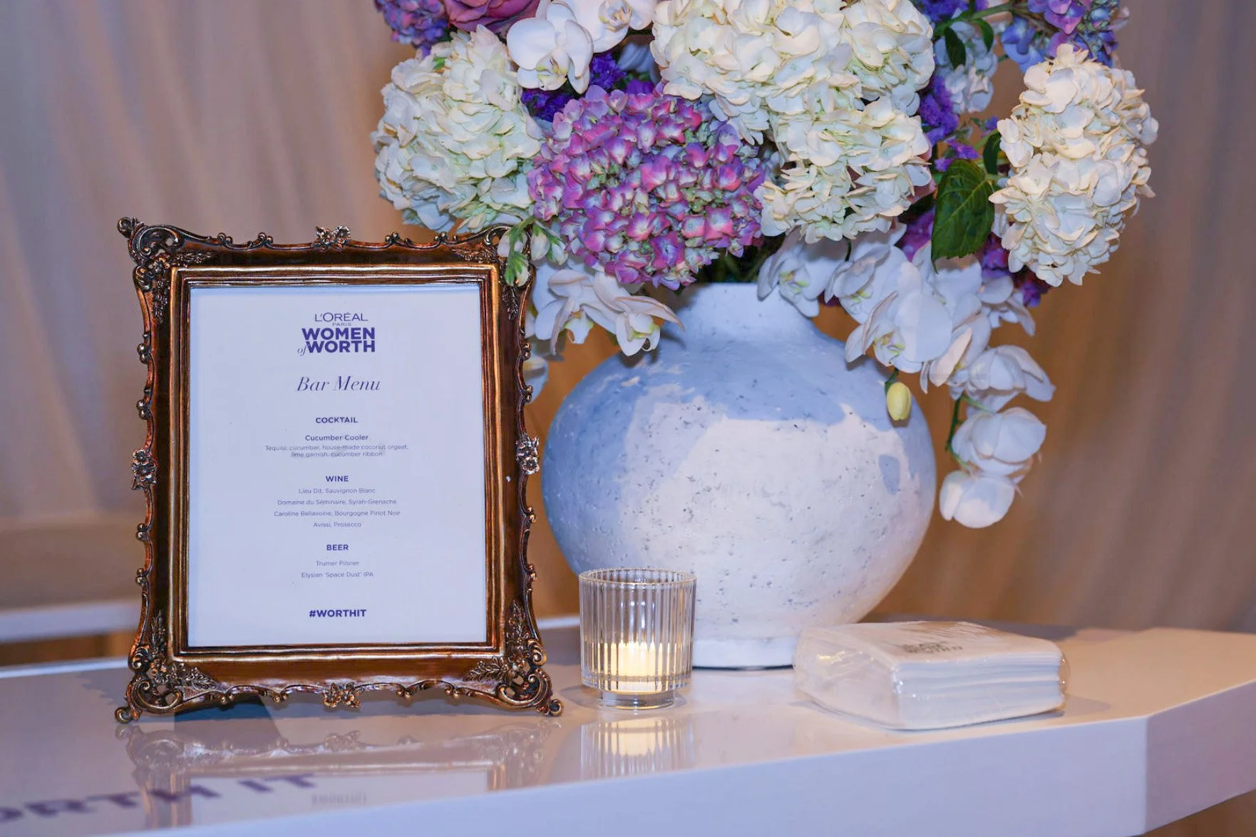 Craft an immersive event design for L'Oréal's "Women of Worth," blending elegance and interactivity to showcase the honorees' impactful journeys with visual flair and emotional resonance.