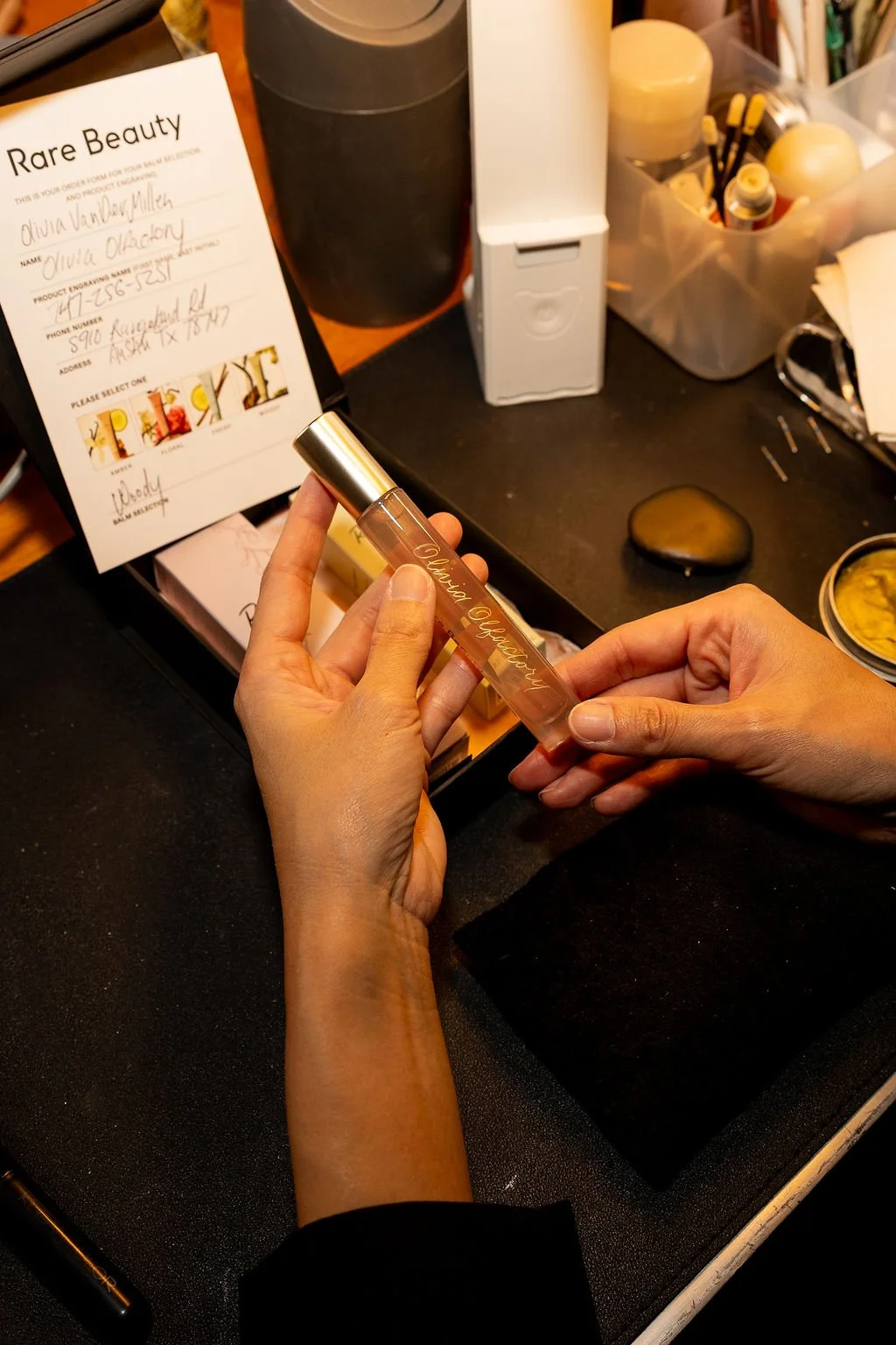 The Layering Lounge offered guests a dedicated space to explore four fragrance balms designed to be mixed and paired with the Rare perfume. In this intimate bar-inspired setting, visitors could test, layer, and discover their favorite combinations before filling out personalized cards to select the balm they would take home.