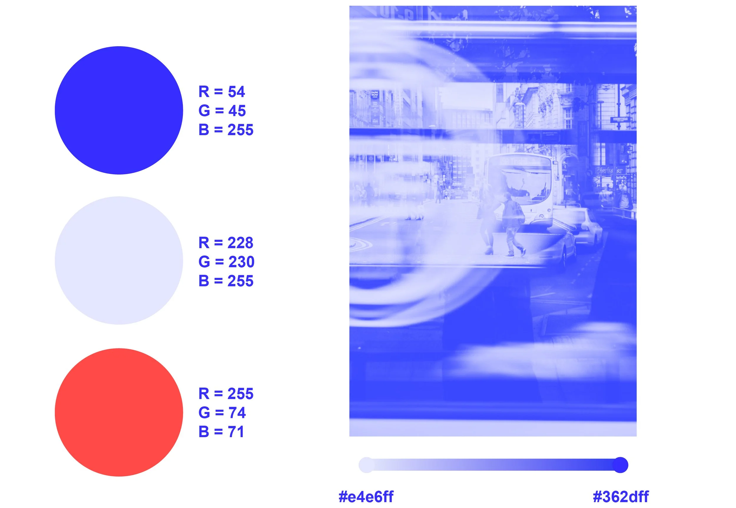 The palette is a contemporary take at France’s national colors blue, white and red. It offers a distinct balance between hot and cold and a reassuring, governmental control of the app. Images are treated with hues of blues with a slight grain to bring a more authentic effect.