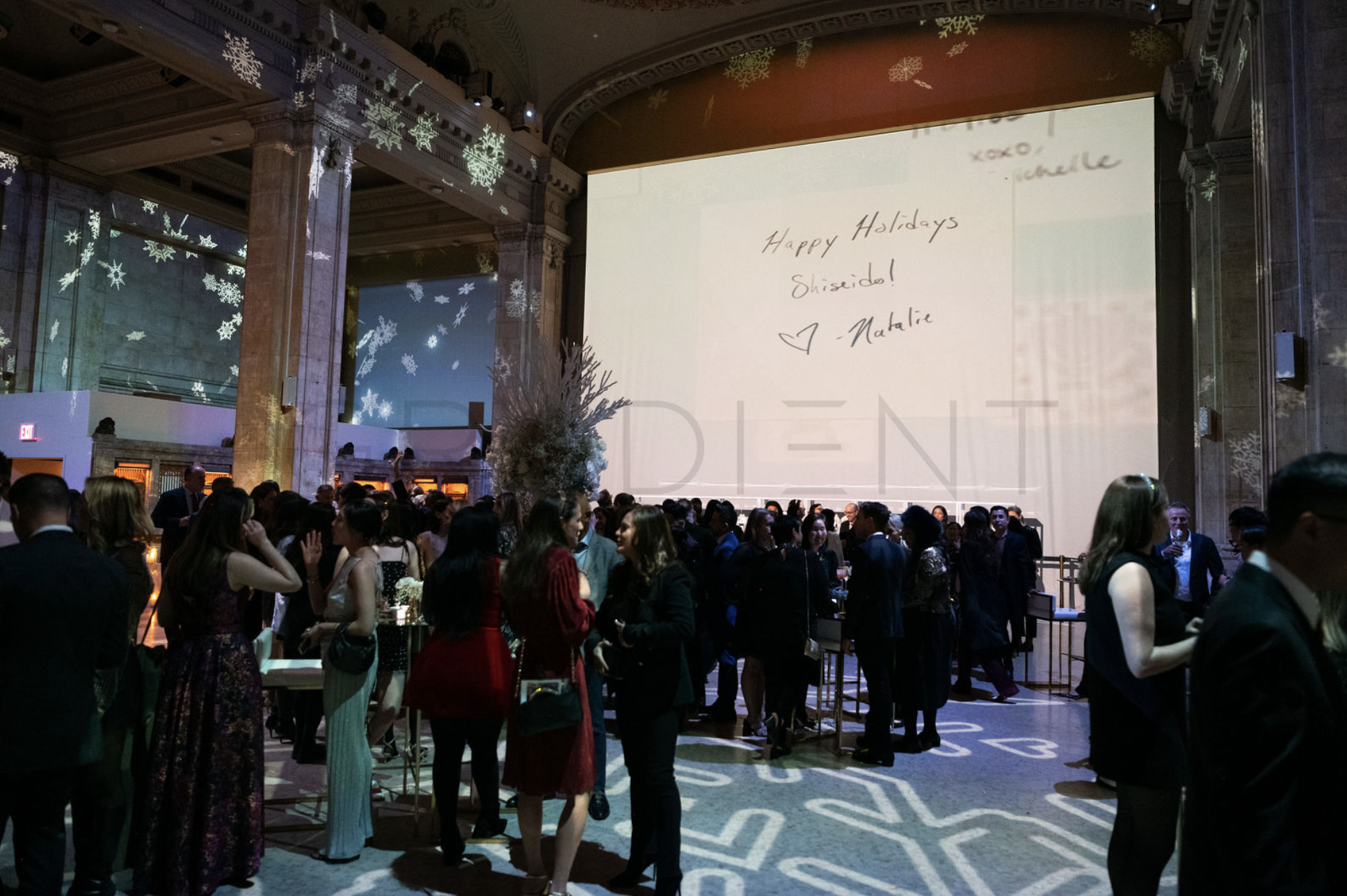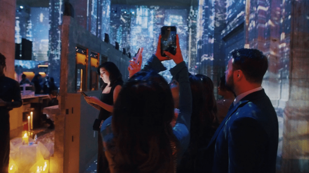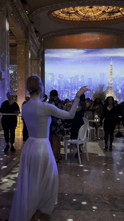 I offered to implement a live note projection system to bring guests closer together and fit into the theme of the event. Brand ambassadors strolled around the venue with iPads collecting notes that I would then comb through and implement into a tailor-built system, allowing me to project them instantly on Hall des Lumières’s oversize screen for everyone to see. When notes weren’t projected, images of the guests as they were being taken live were projected instead.