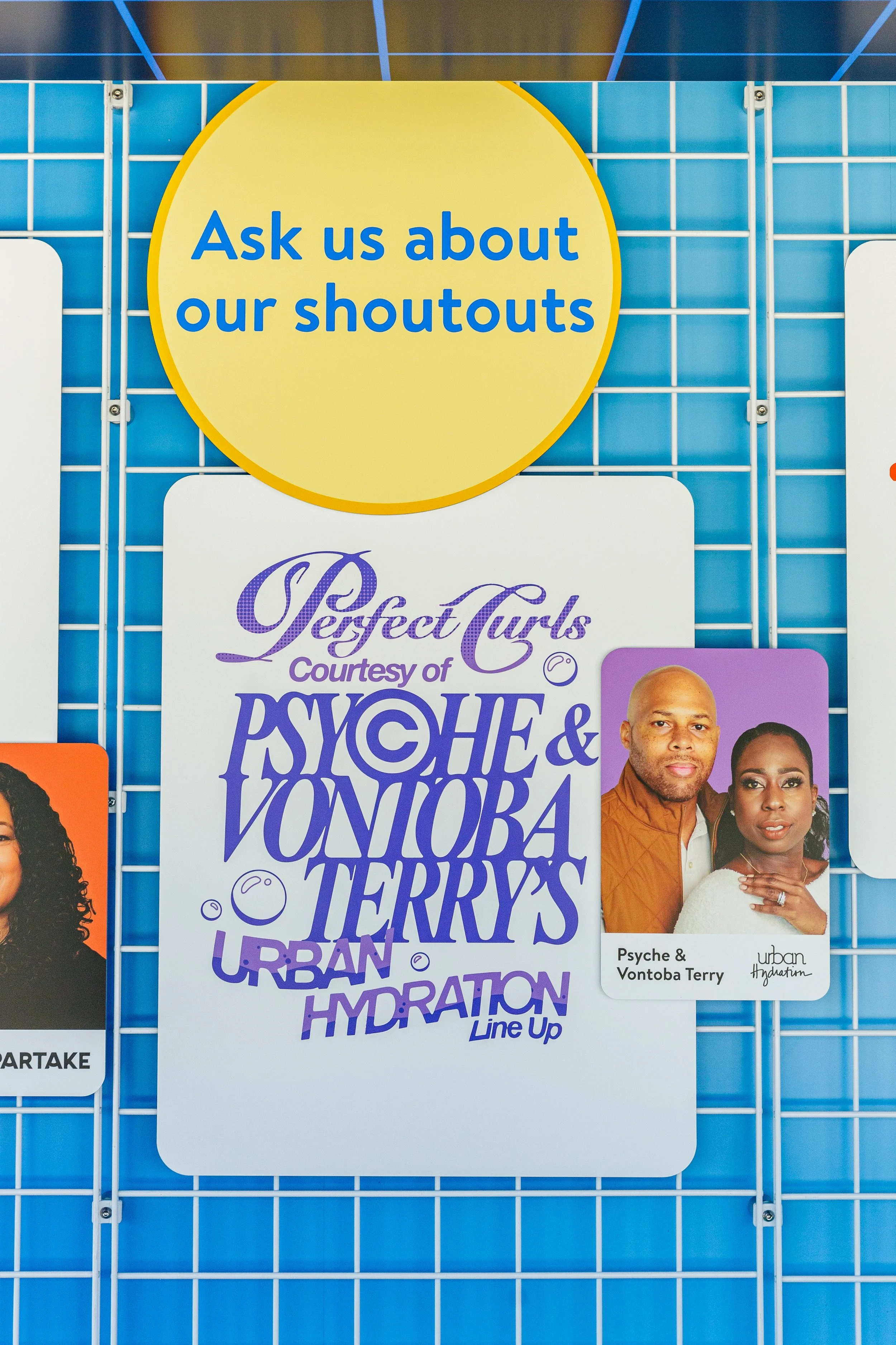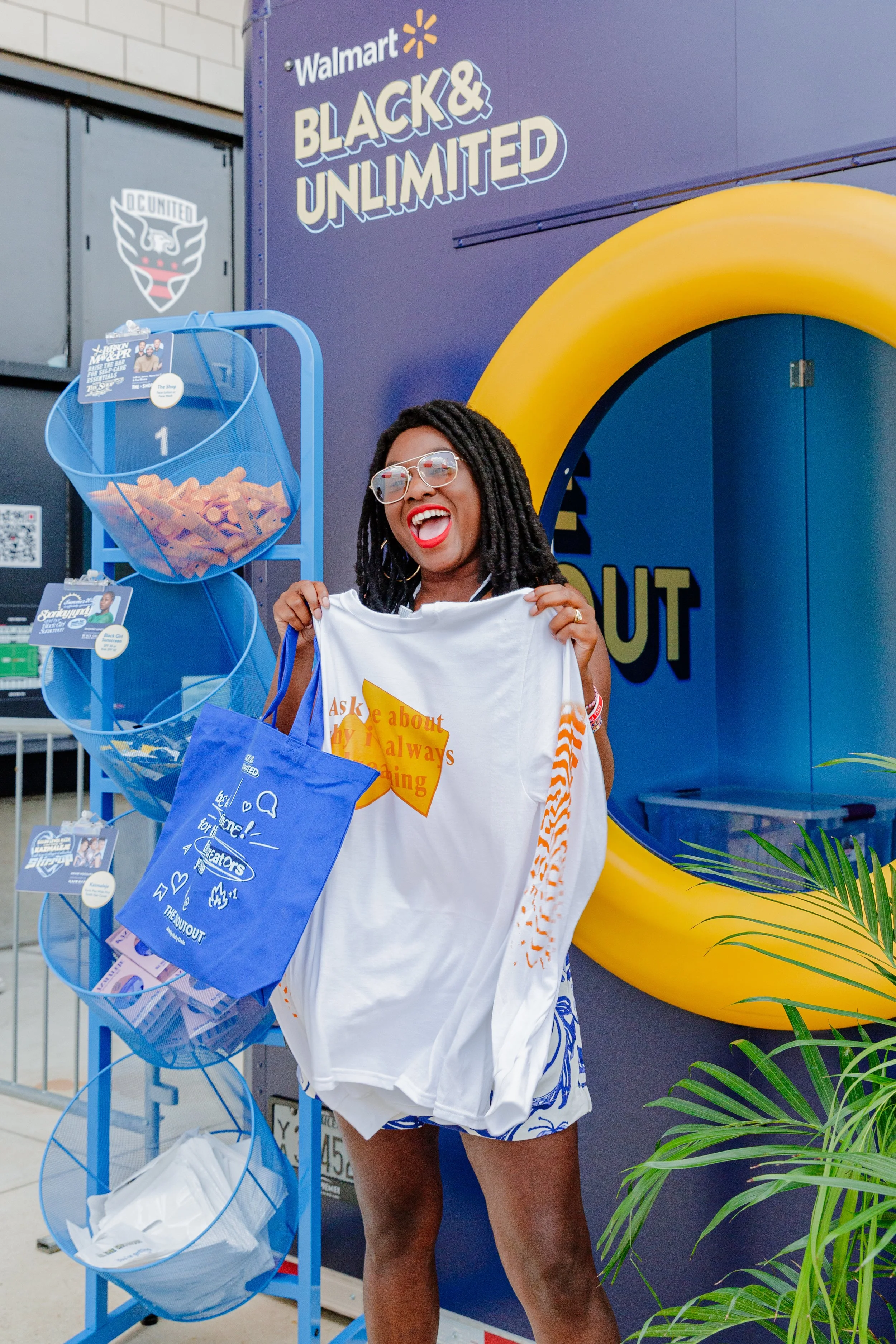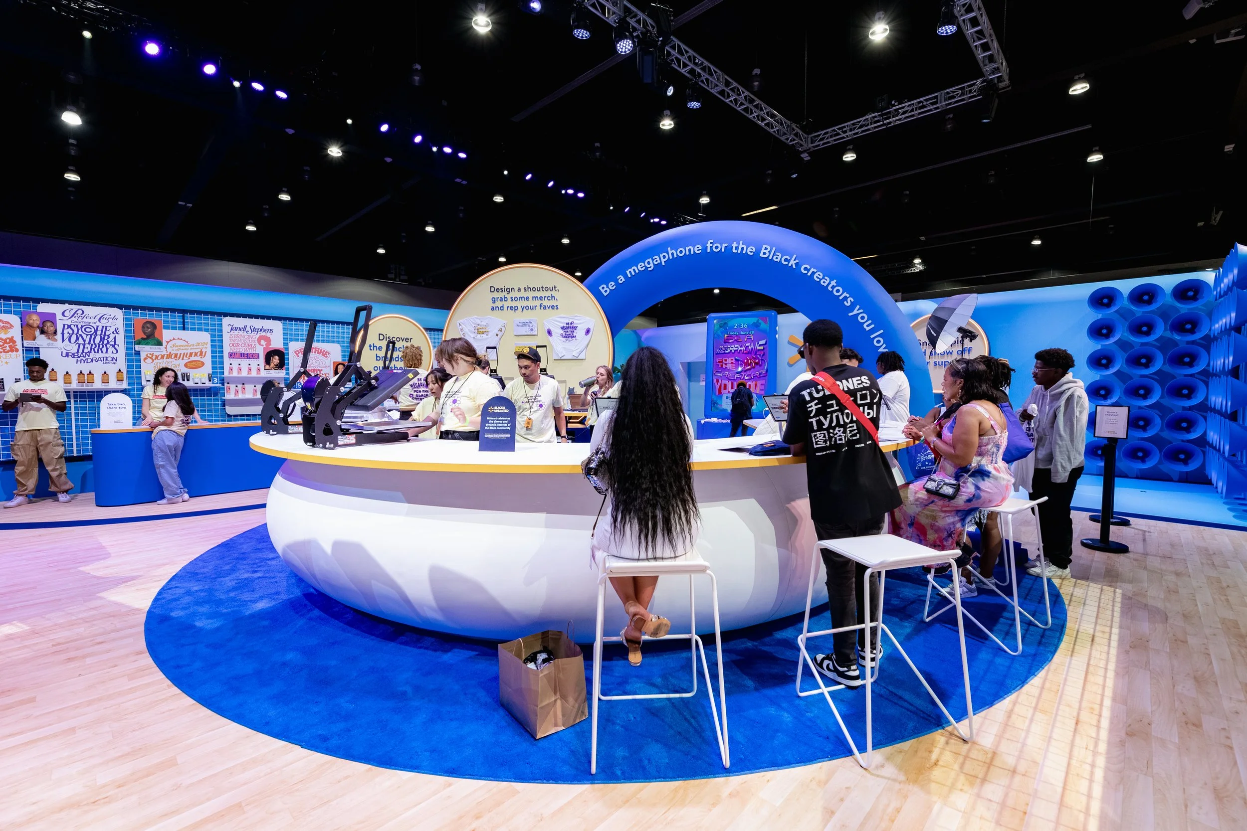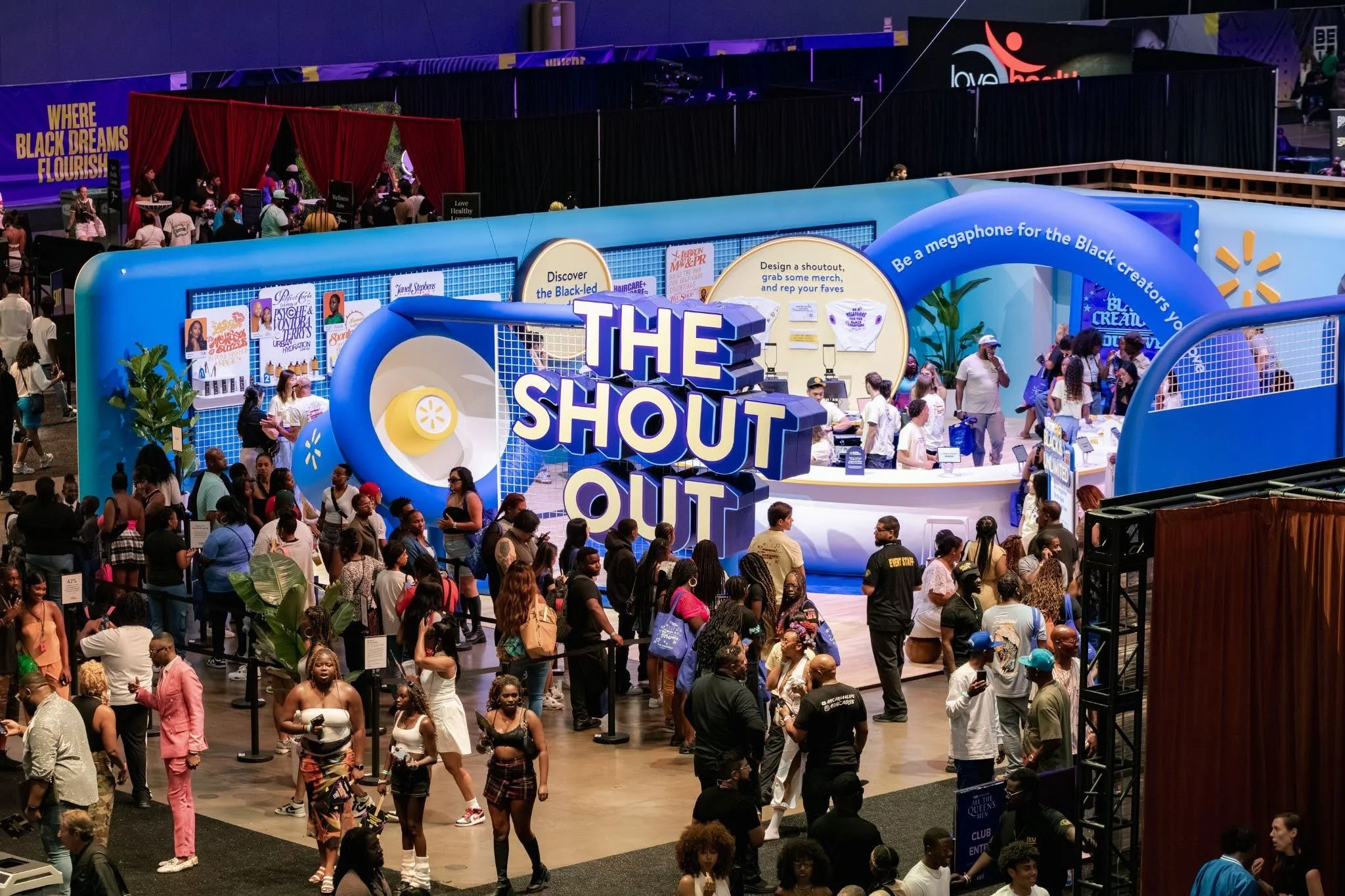 The Shoutout was a vibrant, interactive space literally shouting out Black creators and brands from the firm. Attendees personalized wearable merch—T-shirts and totes designed by artists like Jae Tips and NickyChulo. The activation featured a design bar, gallery wall, oversized megaphone photo op, and giveaways of Black-owned products sold at Walmart, driving discovery, content sharing, and community connection.