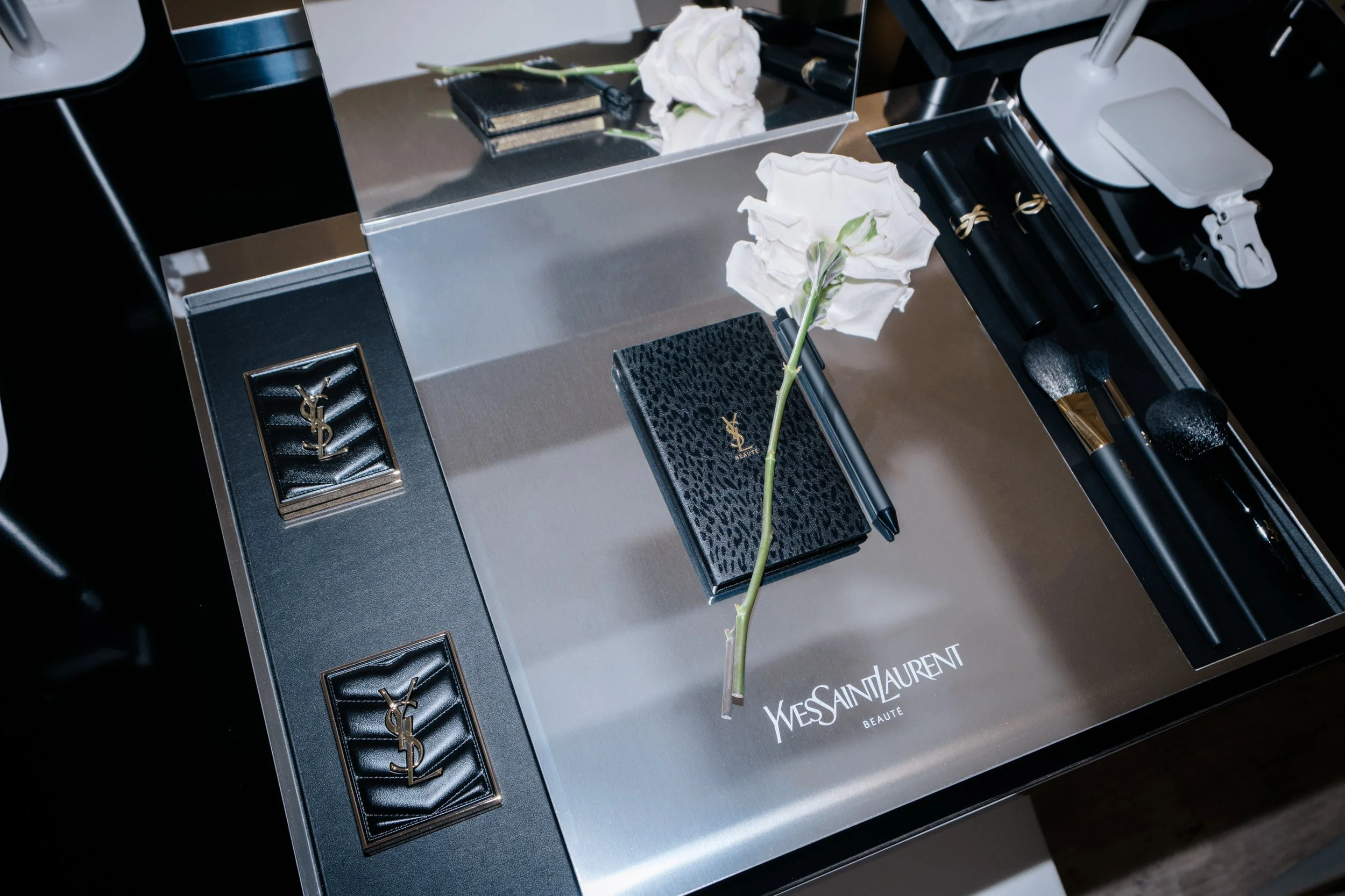 The YSL Beauty Masterclass offered guests an intimate, hands-on experience led by YSL’s main professional makeup artist. Each attendee was seated at a custom-designed vanity, complete with custom mirrors and precise product placements — creating a sleek, atelier-like setup that blended artistry, luxury, and personalized education.